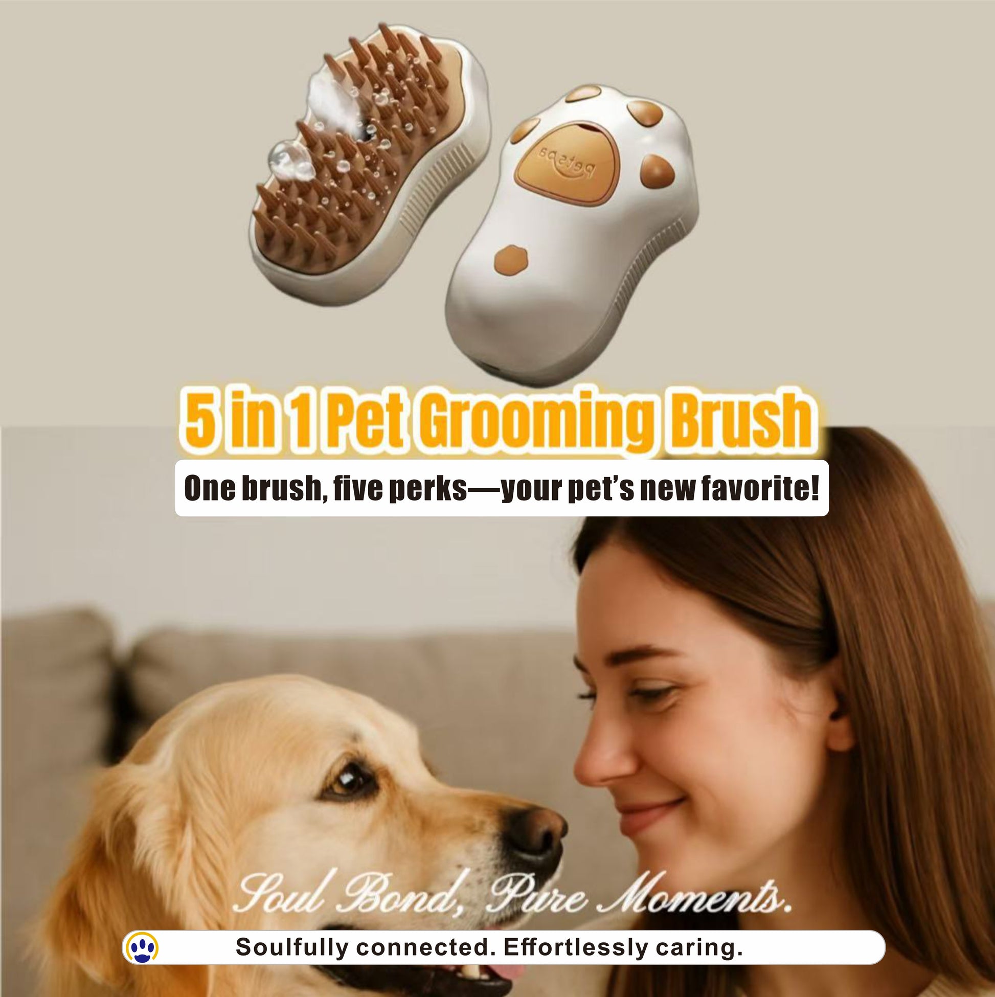 5 in 1 Pet Grooming Brush Steam Spray Self Cleaning Slicker Deshedding Massage Comb.One brush,five perks-your pet's new favorite!