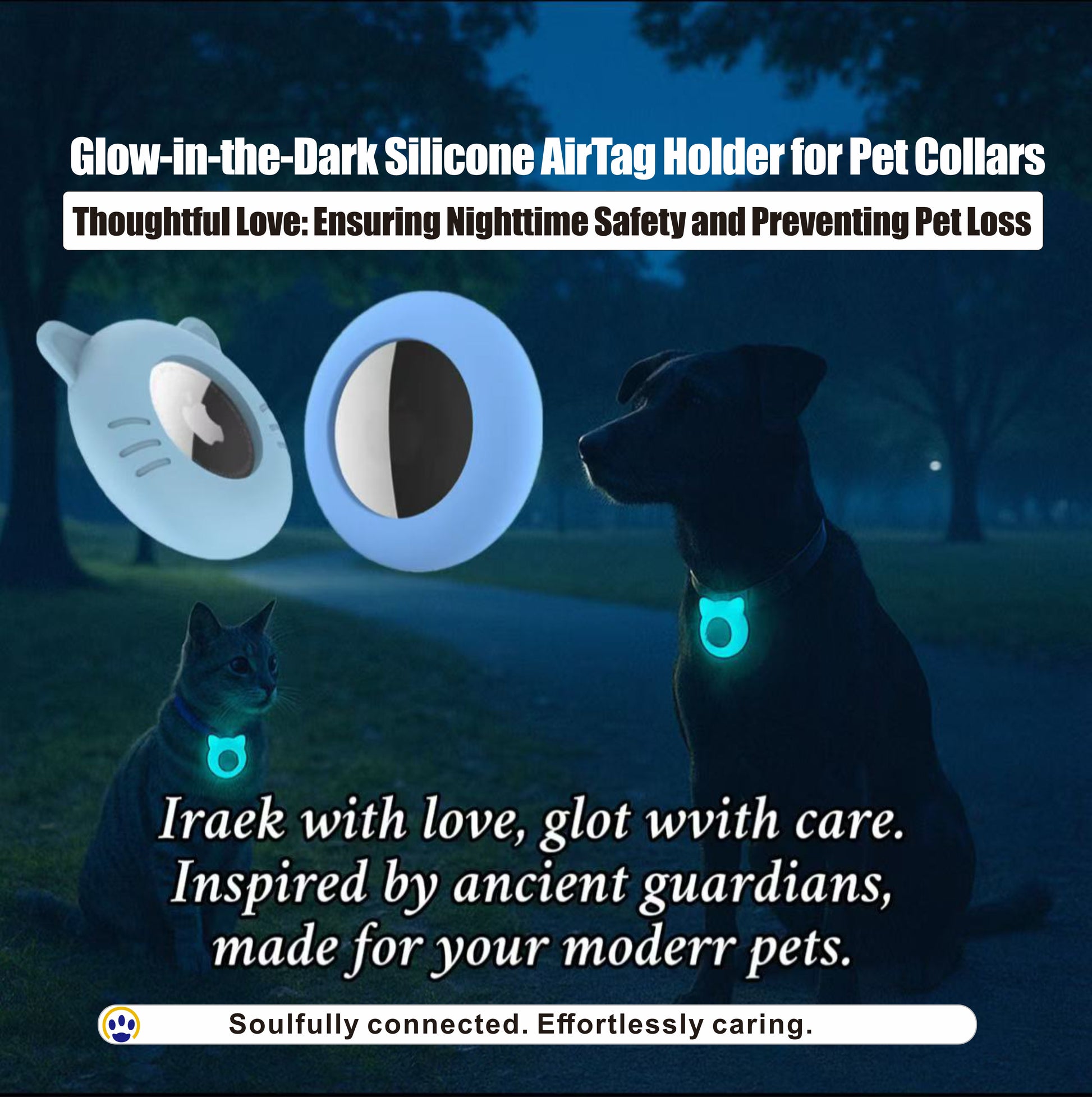 Glow‑in‑the‑Dark Silicone AirTag Case for Pet Collars – IP54 Waterproof GPS Tracker Protector.Thoughtful love:Ensuring Nighttime Safety and Preventing Pet Loss