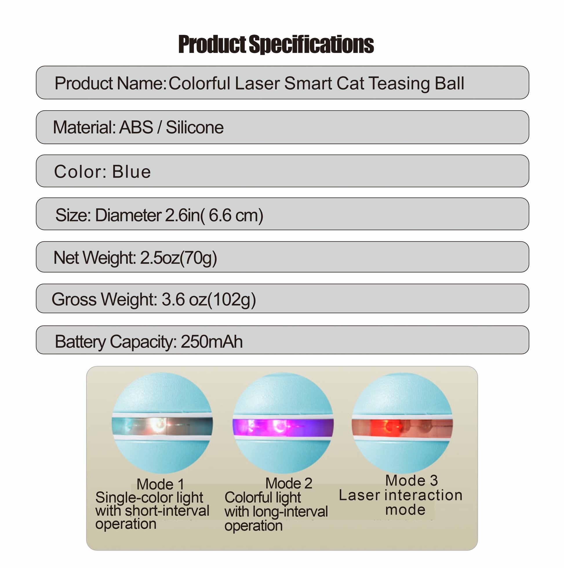 Smart Interactive Cat Toy Ball – LED Lights, Laser Pointer, Feather & Bell Attachments, USB Rechargeable, Durable ABS, Ideal for Indoor Cats.Colgrful Laser Smart Cat Teasing BallSmart chase. Infrared play. Swappable add-ons.More than play-its love in motion.