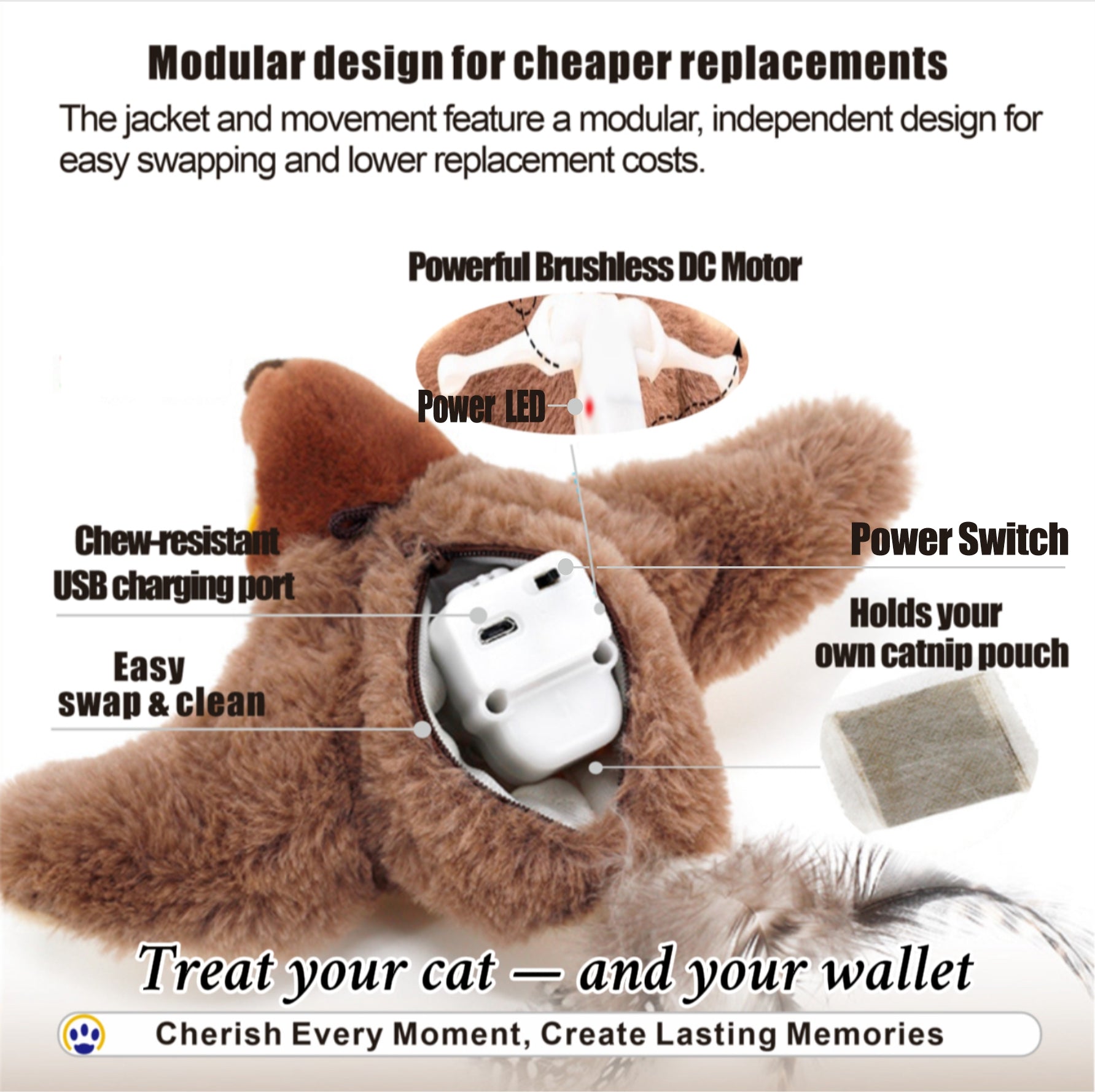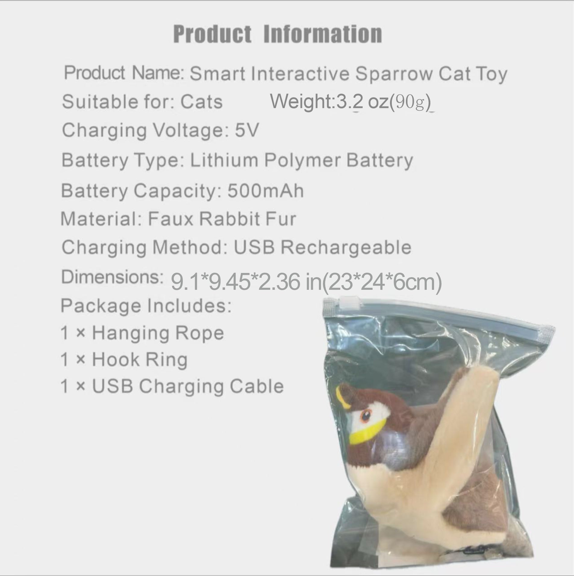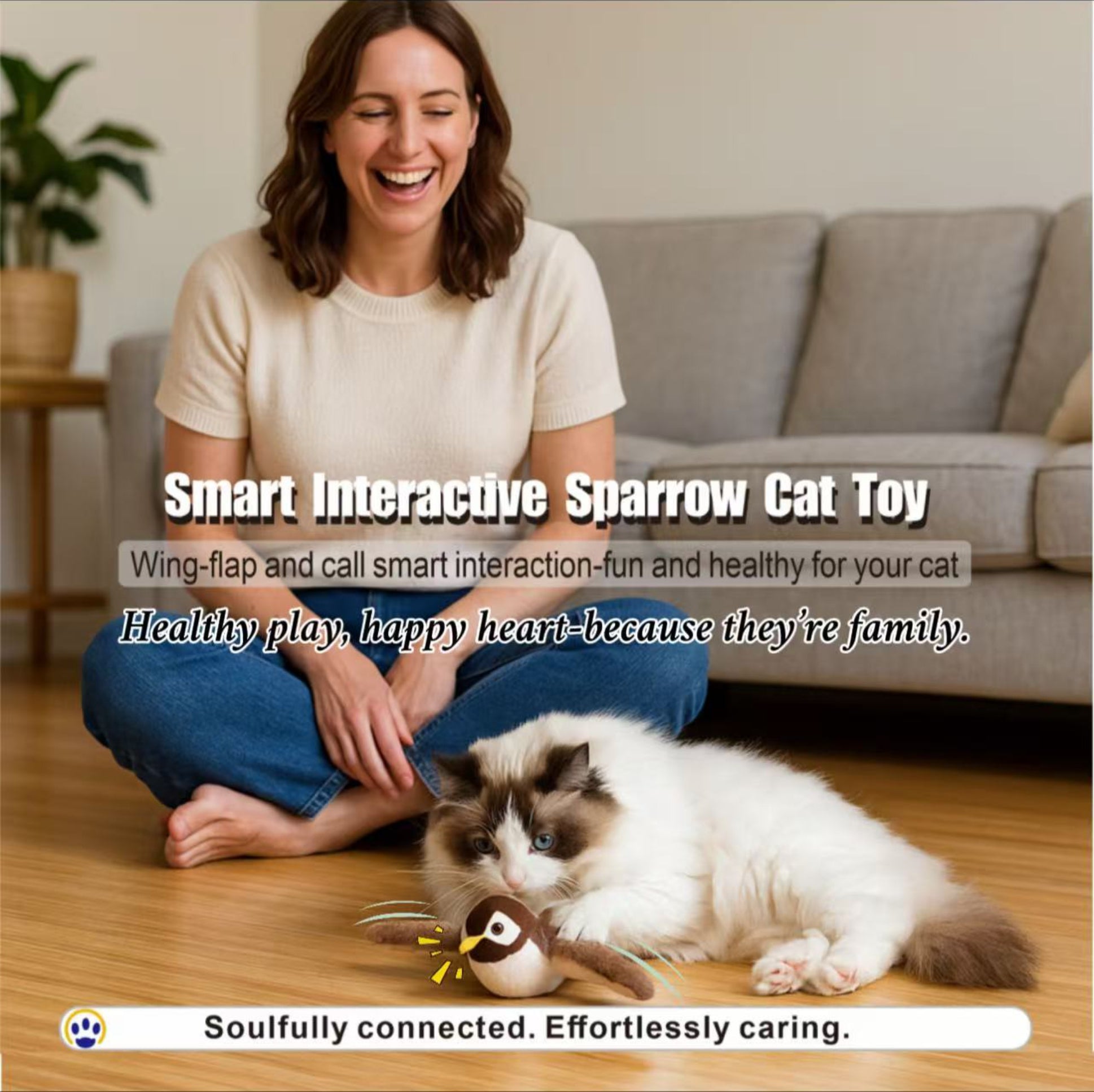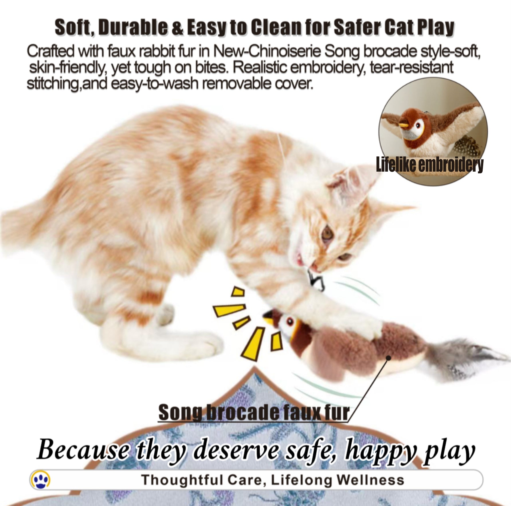 Smart Interactive Flapping Sparrow Cat Toy – Motion-Activated Chirping Bird with Catnip & Washable Cover.Wing-flap and call smart interaction-fun and healthy for your catHealthy play, happy heart because they're family.
